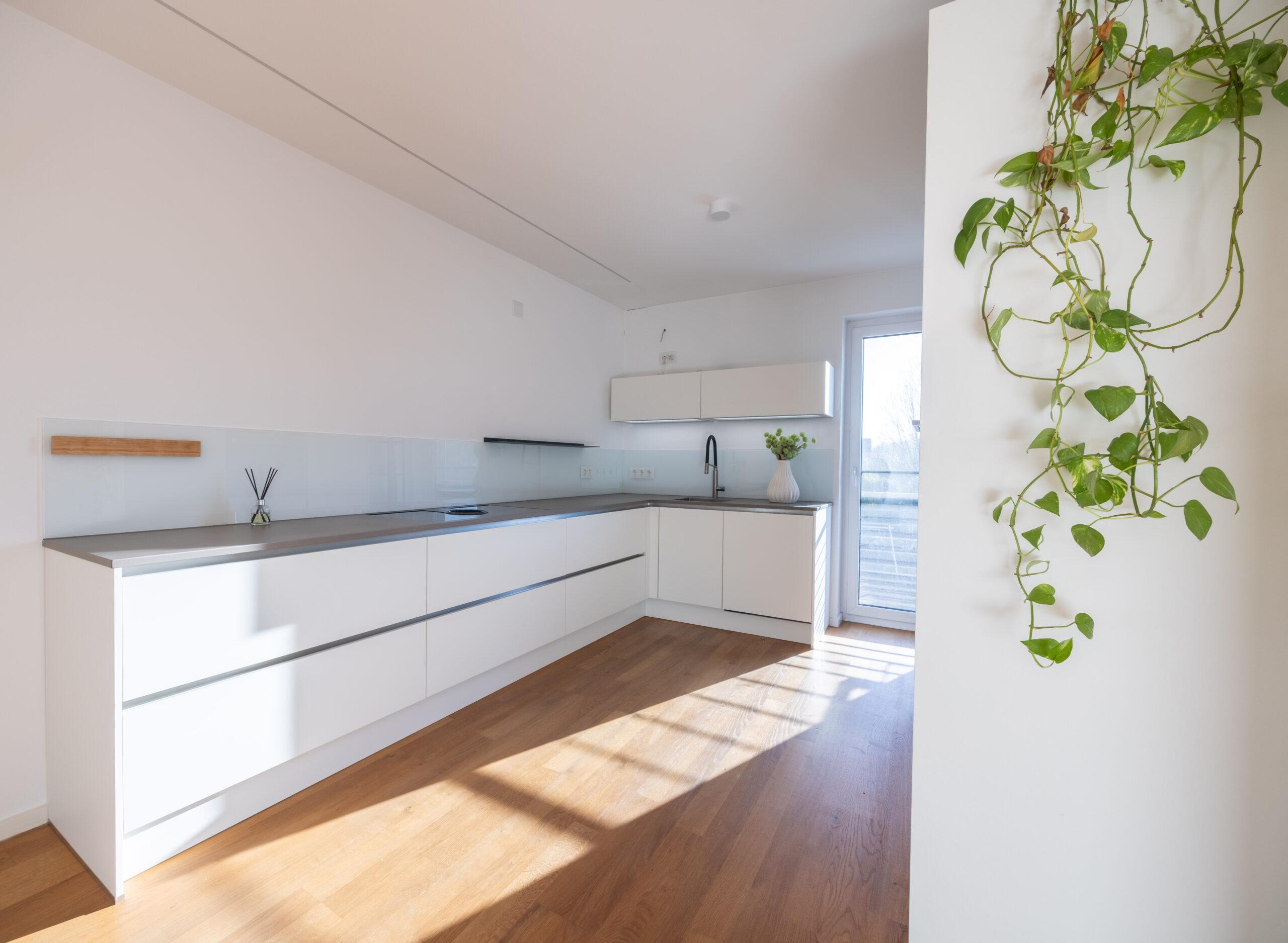 Diese stilvolle und hochwertig ausgestattete Dreizimmerwohnung vereint modernes Wohnen mit durchdachter Raumaufteilung und einem besonderen Wohlfühlambiente. Das im Jahr 2010 errichtete Mehrfamilienhaus mit lediglich sieben Parteien bietet eine ruhige, gepflegte Wohnatmosphäre und entspricht höchsten Ansprüchen an Komfort und Qualität. Die ca. 104 m² große Wohnung befindet sich in der zweiten Etage und ist bequem über einen modernen Edelstahlaufzug erreichbar, der Sie nicht nur bis vor die Wohnungstür, sondern auch direkt in die Tiefgarage führt. Bereits beim Eintreten überzeugt die großzügige Diele, die mit einem maßgefertigten Einbauschrank ausgestattet ist und dem zukünftigen Mieter zur Nutzung zur Verfügung steht. Von hier aus öffnen sich die Räume in einem klaren, modernen Grundriss, der ein offenes und zugleich wohnliches Raumgefühl schafft. Der lichtdurchflutete Wohn- und Küchenbereich bildet den Mittelpunkt der Wohnung. Die Küche ist offen gestaltet und fügt sich nahtlos in den Wohnraum ein. Eine hochwertige Einbauküche ist bereits vorhanden und kann vom zukünftigen Mieter gegen Entgelt übernommen werden – eine ideale Lösung für alle, die ohne großen Aufwand sofort einziehen möchten. Großzügige Fensterflächen sorgen für ein angenehmes Raumgefühl und führen direkt auf den sonnigen Balkon mit Südwest-Ausrichtung, der zu entspannten Stunden im Freien einlädt.