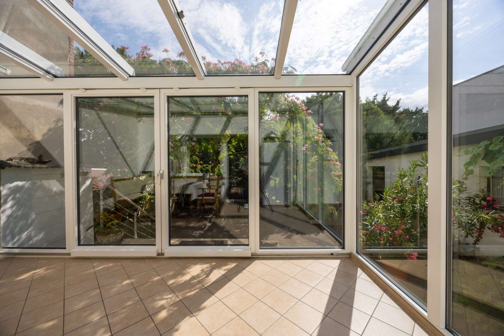 Das Haus ist einseitig angebaut und verteilt sich über zwei Ebenen mit insgesamt vier Zimmern. Die Aufteilung ist durchdacht, die Räume hell und freundlich. Neben einem Badezimmer und einem separaten Gäste-WC sorgen die Wohn- und Schlafräume für ein gemütliches Ambiente. Die vorhandene Gasheizung sichert eine zuverlässige Wärmeversorgung, während der neuere Wintergarten mit Sonnenmarkise einen wunderbaren Übergang zwischen Wohnraum und Garten schafft- ein echter Lieblingsplatz zu jeder Jahreszeit.