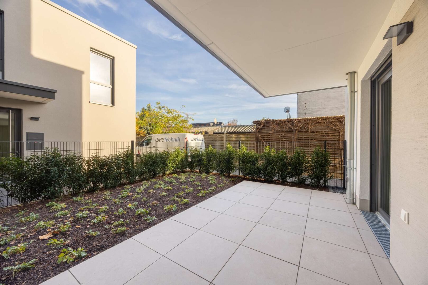 Ein Waschraum zur Allgemeinnutzung und eine Abstellmöglichkeit für Fahrräder bieten zusätzlichen Komfort. Geschmackvolle Mülltonneneinhausungen runden das stilvolle Erscheinungsbild der beiden Häuser ab.
