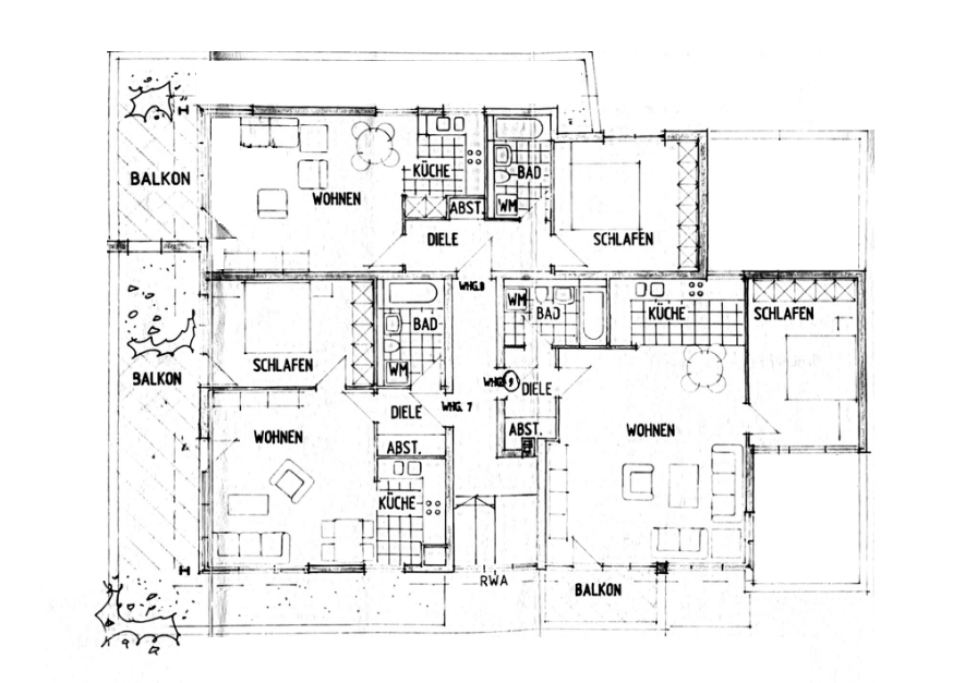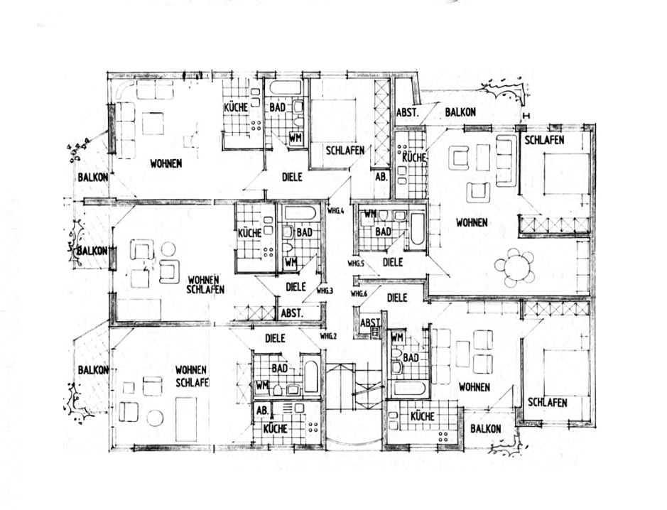 Die Wohnungen befinden sich alle in einem modernen Zustand und wurden teilweise bereits aufwändig modernisiert. Die Gemeinschaftsflächen präsentieren sich als außergewöhnlich gepflegt. Die hauseigene Tiefgarage bietet 9 Stellplätze und einen Abstellplatz für Fahrräder. Das Kellergeschoss beinhaltet die Mieterkeller und die üblichen Technik- und Hausanschlussräume. Die Wohn-einheiten verfügen alle über Balkone oder Dachterrassen und erstrecken sich ab einer Größe von 45– 66 qm von 1- 3 Zimmern und bieten so ideale Vermietbarkeiten, sowie ein enormes Potential, was Mietsteigerungen bei Neuvermietungen angeht.