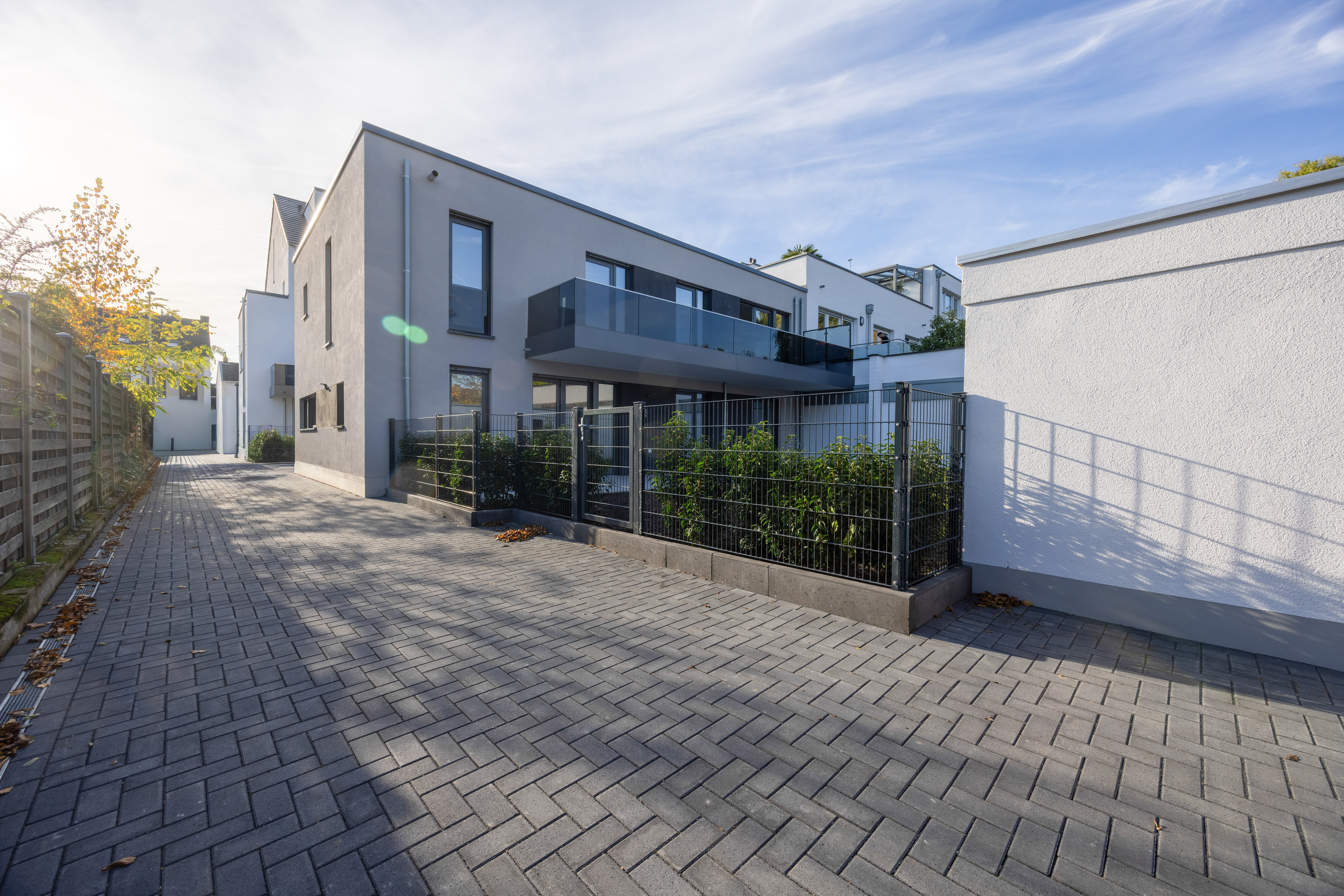 Als repräsentatives Mehrparteienhaus im vorderen Grundstücksbereich wurde in der Planung der 5 Etagenwohnungen und einem zusätzlichen Ladenlokal großer Wert auf eine ökonomische Grundrissgestaltung in Verbindung mit individuellen Ausstattungsmerkmalen gelegt. Im hinteren Grundstücksbereich befindet sich Haus 2 mit einem Haus in Haus Konzept in kubischer Bauweise geplant. Die beiden 4 bis 4,5 Zimmer Wohnungen und einer Größe ab 131 m² überzeugen durch Ihre individuelle und großzügige Raumaufteilung.